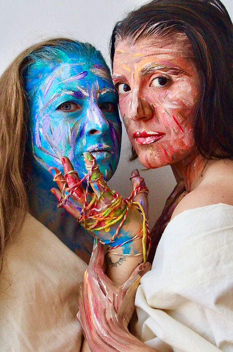 Artistic curation and mask creation by Kira Hawkridge, Artistic Director of OUT LOUD Theatre. Models are ensemble members of the company and collaborating artists.